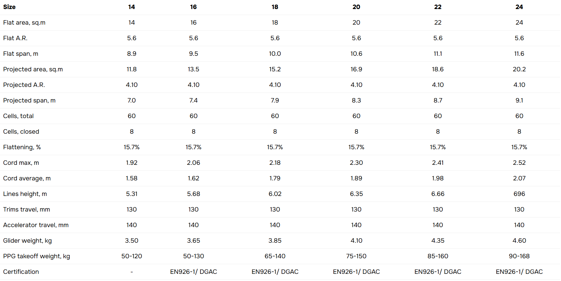 Equipped with this newly designed reflex profile, the DISCO is designed for the wide speed range and high fuel efficiency of the Davinci PPG model, providing dynamic handling and agility for SLALOM competitions.
