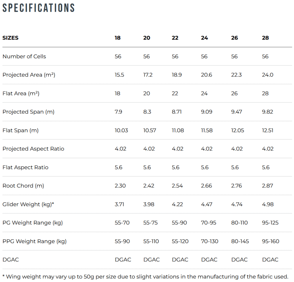 *Note the Sirocco 3 has not been independently EN 926-2 flight tested.